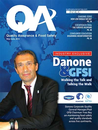 Not only are all Danone facilities certified to the GFSI-benchmarked FSSC 22000, all Danone suppliers are required to be certified to a GFSI scheme, and Corporate Quality General Manager Yves Rey introduced the food manufacturing industry to GFSI in 2005, then held the position of GFSI chairman from 2012 through early 2014. At the February 2014 Global Food Safety Conference, where Rey turned over the two-year chairmanship to Cenk Gürol of Japan (See New GFSI Leaders, sidebar below), Rey spoke on “One World ... One Safe Food Supply” and granted an exclusive interview to QA magazine.