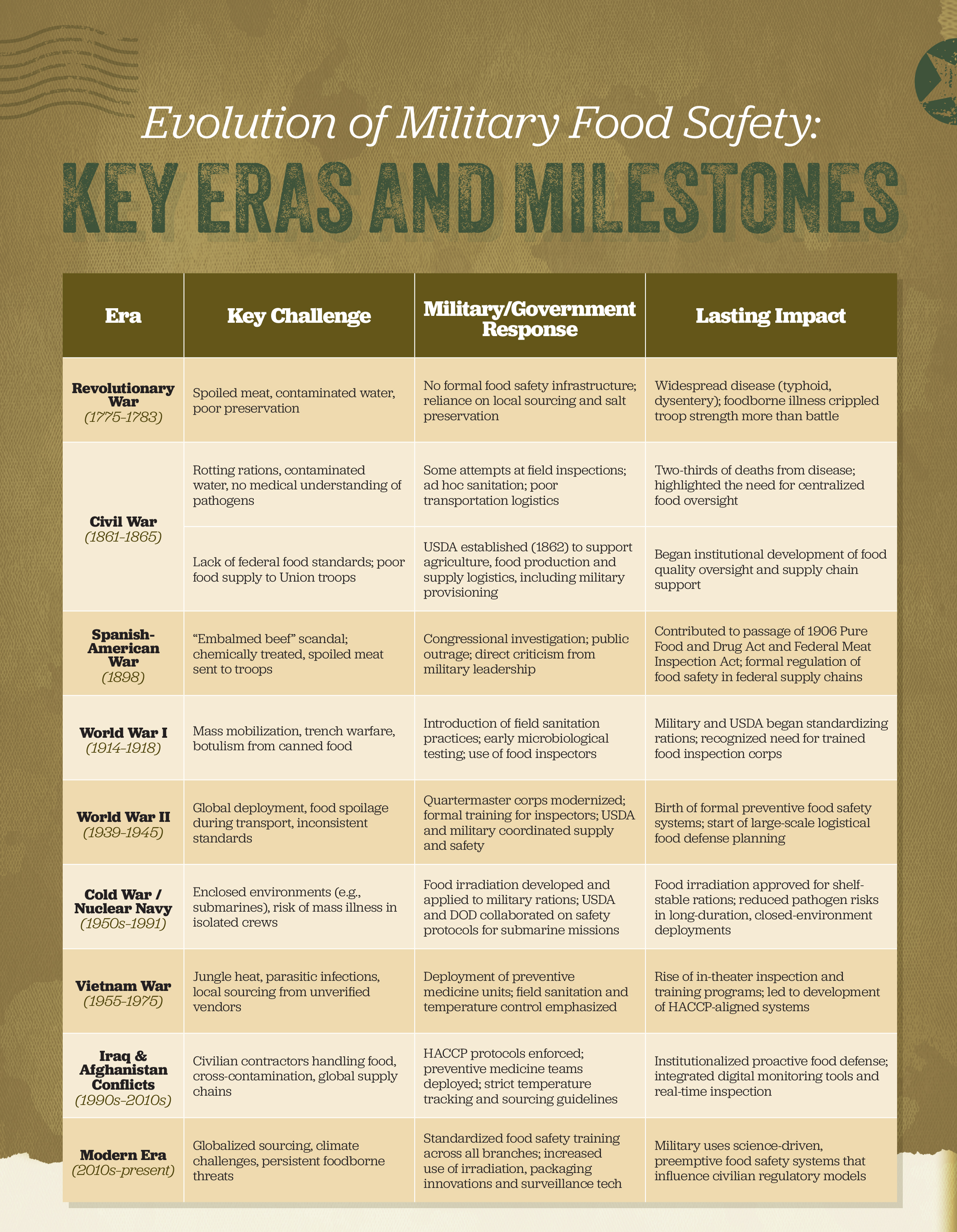 “Military veterans do so well in food safety because of their chain-of-command training and mission focus,” said Hal King, a food safety expert, U.S. Army veteran and former commander in the U.S. Public Health Service (a branch of the U.S. Department of Defense). “Each member understands their role, is trained to execute it with precision and is accountable for the outcome. That’s exactly what food safety demands.”