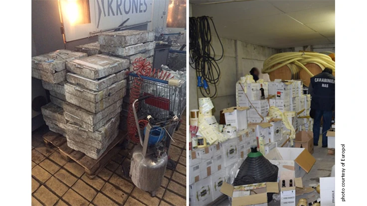 Operation OPSON VI, the joint Europol-INTERPOL operation targeting counterfeit and substandard food and drink, as well as the organized crime networks behind this illicit trade, has resulted in the seizure of 9 800 tonnes, over 26.4 million litres, and 13 million units/items worth an estimated EUR 230 million ($250 million) of potentially harmful food and beverages ranging from every day products such as alcohol, mineral water, seasoning cubes, seafood and olive oil, to luxury goods such as caviar.