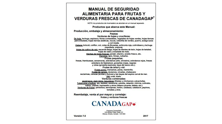 "The manuals are being made available for the first time in Spanish in response to requests from program users inside and outside Canada," stated Heather Gale, Executive Director for the CanadaGAP program. "In addition to demand in Canada, the reach of the CanadaGAP program is also expanding to Spanish-speaking areas of the world, including Latin America."