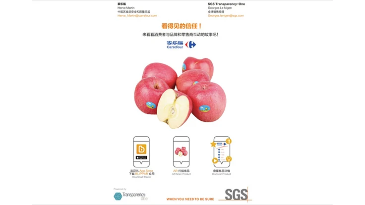Carrefour and SGS have launched Visual Trust in China. Visual Trust is an end-to-end digital solution that allows Chinese shoppers to check the quality and origins of their purchases by scanning food with their smartphones. When shoppers scan products, they gain immediate access to quality certificates, test results, locations and pictures of farms, as well as nutritional advice.