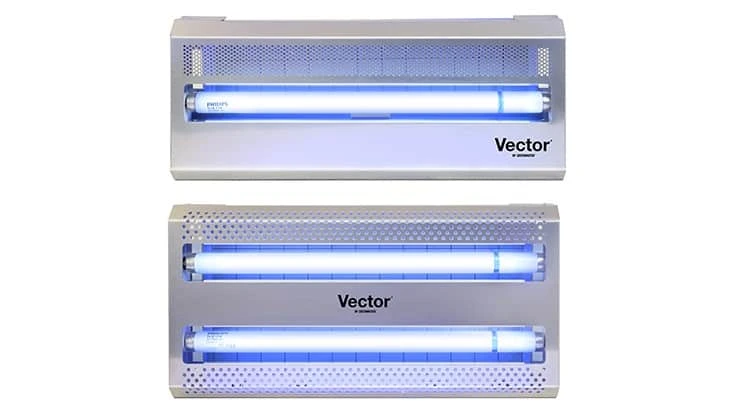 The newest additions to the vector fly light line offer a sleek and industrial design and are made of aircraft-grade aluminum making them ultra-durable and able to stand up to the wear and tear in the most challenging accounts, the company reports. Available with 15 or 30 watts of insect-attracting power, they are easy to install, with a lightweight and narrow design, maximizing their placement options.