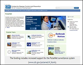 - $17.4 million for foodborne disease prevention and tracking – a $4 million increase over fiscal year 2014 funding. This includes increased support for the PulseNet surveillance system and outbreak response and for the Integrated Food Safety Centers of Excellence to establish a new Northeast Regional center.