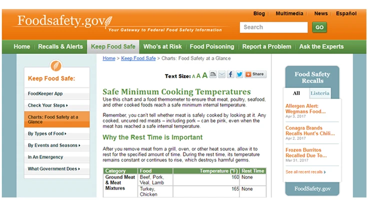 If it does include a temperature, is that temperature one that has been shown to be "safe"? For example, cooking chicken to 165°F.