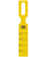 The company also offers Yellow - 'Work In Progress Tag" measuring 11" long by 1 3/4" wide. This tag has preprinted areas indicating; Material / Quantity / Use By and ID Code.