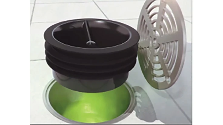 The firm says Green Drain’s four flexible silicone sealing ribs ensure easy installation into openings that may have variations in size and the silicone rubber sealing flapper will open to allow drainage and close when there is no water flow. The Green Drain can be used in either new construction or as a retrofit. Green Drain is available in 2-, 3-, 3.5- and 4-inch sizes. For more information, visit www.divsales.com.
