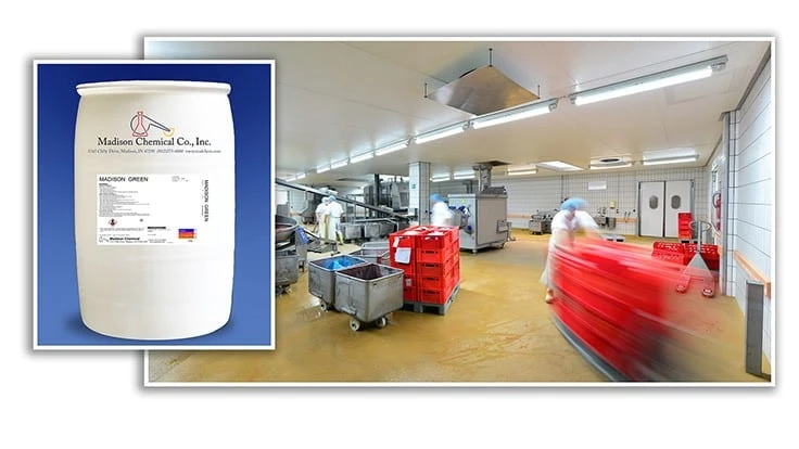 Madison Chemical has introduced Madison Green, described by the company as a mildly alkaline, environmentally friendly, biodegradable general-purpose cleaner that is effective on greasy and waxy soils, such as conveyors, floors, packaging equipment, etc.