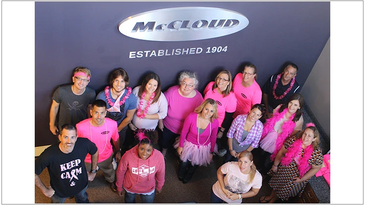 Employees of all 11 McCloud locations are encouraged to participate in local American Cancer Society’s October Making Strides Walks. The walks are designed to share passion and raise funds to help save more lives from breast cancer. In addition to the walk, any employee donations made to the American Cancer Society during the month of October will be matched by the company. In 2015, McCloud and employees donated $1,300 in total to the American Cancer Society. Throughout the month of October McCloud Services will use its newsletter to share employee’s stories about how important cancer awareness is to them, their families and the community
