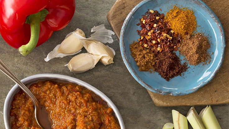 - Rendang Curry, a Malaysian spice paste, delivers mild heat made from chilies, lemongrass, garlic, ginger, tamarind, coriander and turmeric