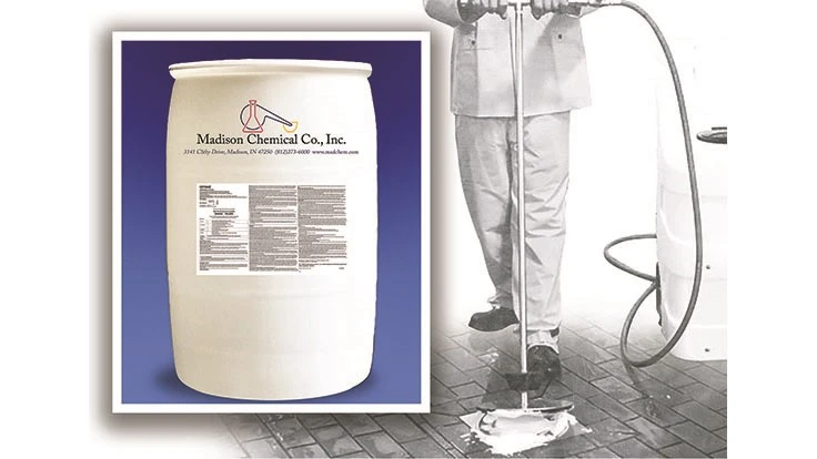 Madison Chemical has introduced Oxywave, a two-part drain cleaning program that cleans drains without scrubbing. The drain-cleaning technology is a quat-free solution to remove biofilm and sanitize drains, floors and walls. Utilizing the power of peracetic acid and Perafoam, Oxywave attacks and eliminates biofilms and destroys microorganisms, the company said, adding, this robust, foaming-sanitizing solution provides 360° contact along the pipe walls for maximum sanitation; will not damage concrete or stainless steel in diluted form.