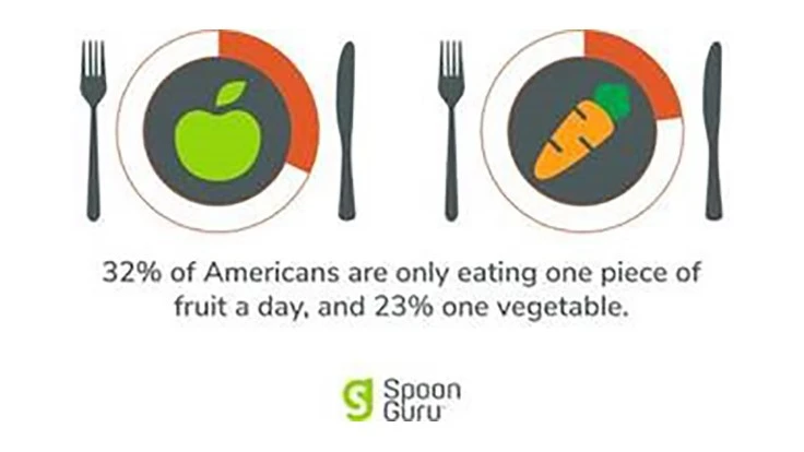 - 32% eat only one piece of fruit a day, and 23% one vegetable.