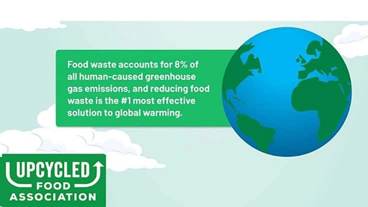 - Upcycled foods are made from ingredients that would otherwise have ended up in a food waste destination. According to the Food Loss and Waste Protocol, the food waste destinations are when food ends up in places like incinerators, as animal feed, or in landfill. By avoiding these destinations, upcycled food makes better use of the energy expended in growing, transporting, and preparing that food. With 8% of human-caused greenhouse gas emissions coming from food loss and waste, reducing food waste is considered the single greatest solution to food waste according to Project Drawdown.
