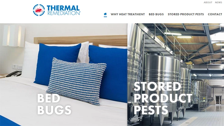 - Lastly, the new website has a clean, polished look – without grotesque insect images. In fact, the only bug image used throughout the entire site is in the Thermal Remediation logo.