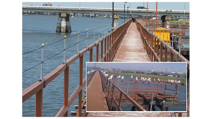 (Pictured: This pier used to be crowded with gulls. After placing Tower Guard on the railings of the pier, the birds stayed away.)