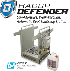 Best Sanitizers, Inc. announces the HACCP Defender Low-Moisture, Automatic Boot Sanitizing Station. The Defender adds an additional layer of pathogen protection by reducing cross-contamination from footwear before employees enter a critical control zones. When an employee enters the station a mist of Alpet D2 Surface Sanitizer saturates their boot soles.