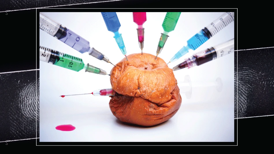 Short weighting, a form of economically motivated adulteration where a substance is added to increase the bulk or weight of the food, can occur in frozen seafood when the net weight includes added water glaze or ice.